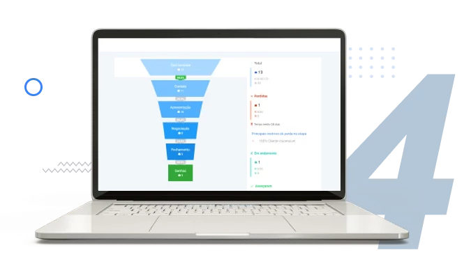 Elabore o seu próprio funil de vendas ou utilize nosso modelo para organizar e acompanhar as suas negociações e da sua equipe.